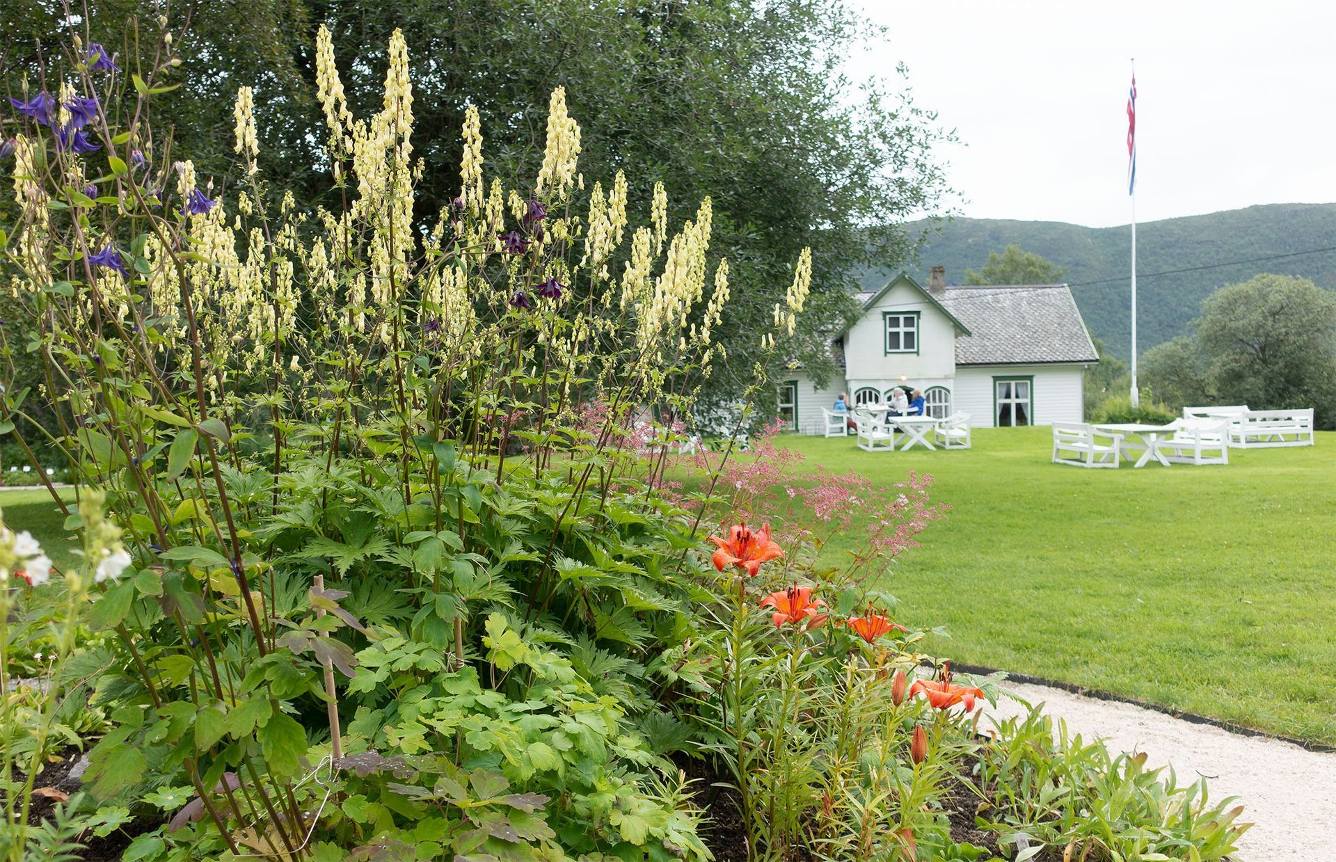 Kafé med kaker og småretter. Hage og salg av stauder & sommerblomster. Stor visningshage med ca. 180 sitteplasser.