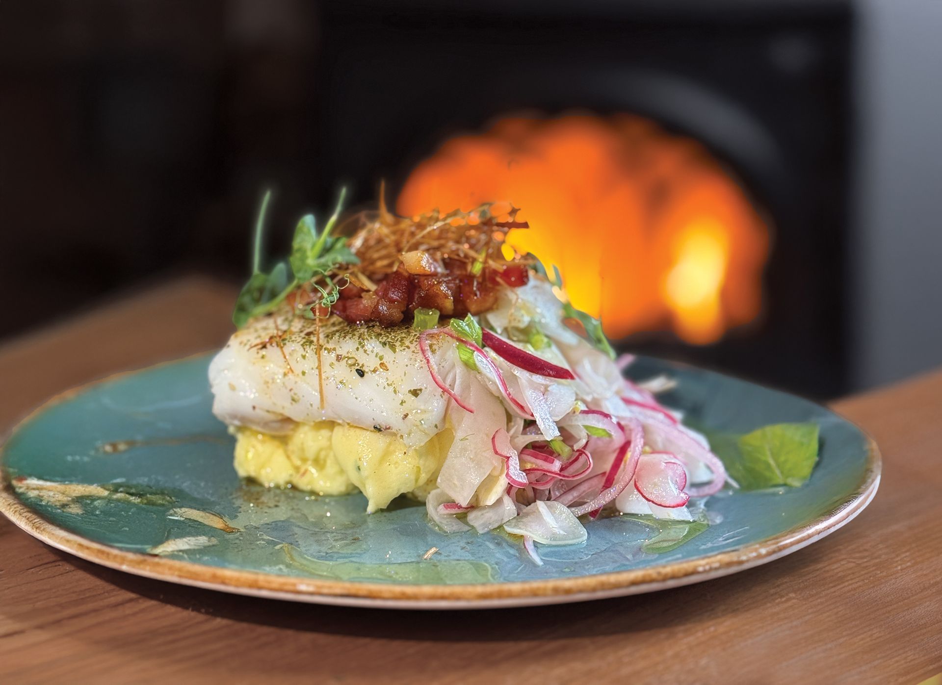 Vi benytter lokal fisk, råvarer fra nærliggende gårder og grønnsaker fra vår egen hage for å skape rene og harmoniske smaksopplevelser.